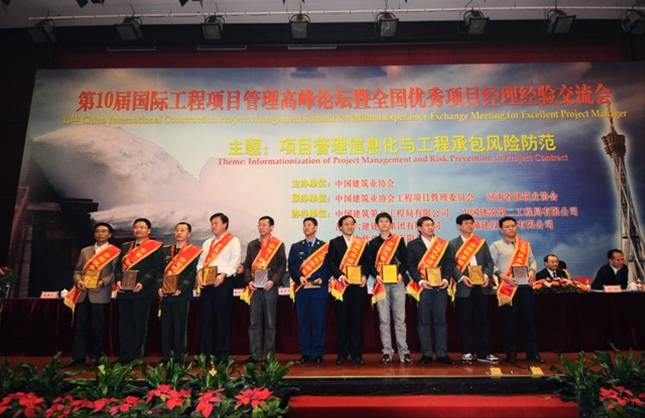 2011年10月23日-24日,第十屆國際工程項目管理高峰論壇暨全國優秀項目經理經驗交流會在千年古都、牡丹花城洛陽隆重舉行。全國各省、自治區、直轄市建筑業協會(聯合會)以及各行業協會,建筑業企業,工程項目經理等各方代表,中建協工程項目管理委員會理事共500余人參會。我集團公司第一房建公司總經理項修國同志喜獲2010年度全國建筑業企業優秀項目經理,并參加了此次論壇。