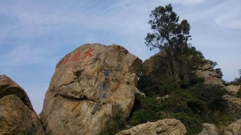 下一個景點是被稱作“海上云岡”的地方,這個地方是一小塊陸地突兀的伸入海中,上面堆了許多巨大的巖石,海邊的巖石嶙峋、鋒利,也有像各種動物或者人物形狀的,有些被景區的開發者再依據石頭形狀稍加雕刻,更加形似。最大的石頭上刻著大大的“大鹿島”三字,署名“劉海粟”。有趣的是劉大師的名字出現在這里很應景,小小的大鹿島就是滄海一粟,作為小小的人來說,更是空間和時間上的滄海一粟。另外看到“大樸不雕”的石刻,字寫的很好看,但覺得很搞笑,既然您知道這最原始的風景不需要雕琢,那么為什么還要把自然大氣的原始石頭雕琢一下?和海浪這位最偉大的雕刻家相比,任何的后天加工都是多余的啊。孩子們倒是不在乎這些,石頭縫里留存了一些退潮后的海水,里面的小螺螄小螃蟹引起了他們的莫大興趣。