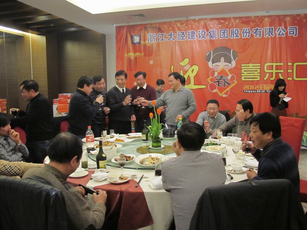 宴會開始前,辦公室人員對參加宴會的人員實行簽到制度并依次發放耀達商場購物卡,讓大家感受到了集團公司對每位員工的濃濃情意。六點,與會人員紛紛入席后,建設局副局長王黎明和大經公司總經理胡明先后致辭,在肯定大經集團在2011年取得的成就的同時,希望公司作為臨海市的龍頭企業能夠在新的一年里龍騰虎躍、更上一層樓,并祝愿每位員工龍馬精神。而后主持人宣布宴會正式開始。