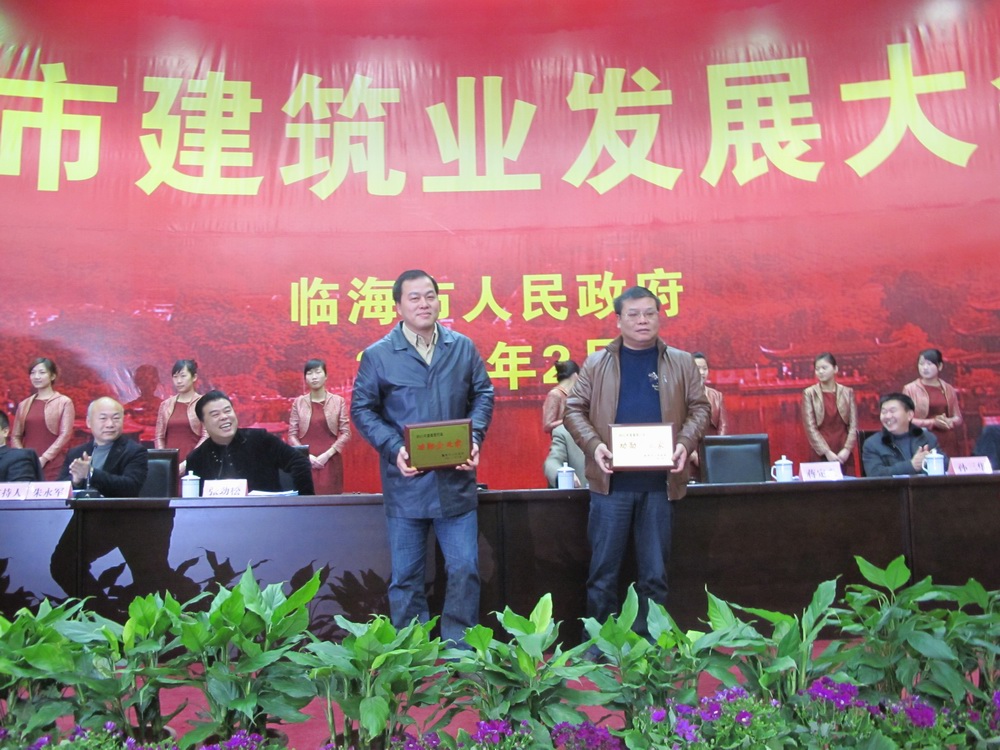 會議表彰了2011年度全市建筑業系統先進集體和個人,并舉行了隆重的頒獎儀式。我集團再度被評為臨海市建筑業龍頭企業,董事長梁才獲得臨海市建筑行業功勛企業家稱號。(詳見二版二○一一年度市地級建筑業系統先進集體和個人獲獎名單)