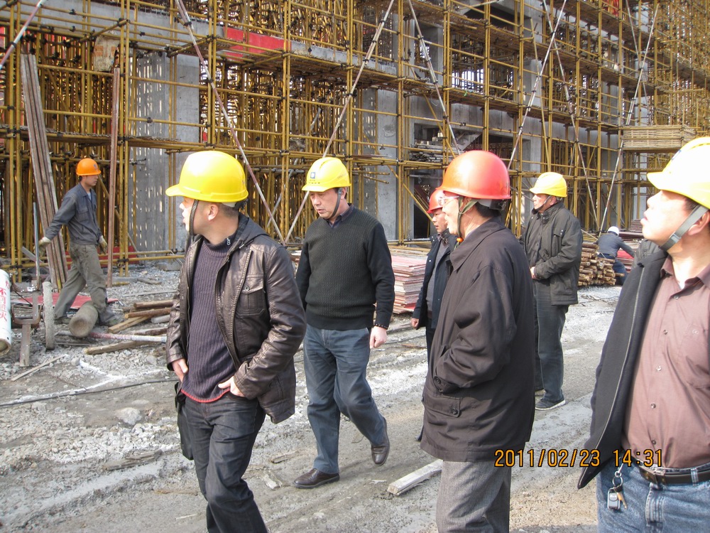 2011年2月23日下午,集團公司李建強、胡田宏倆位副總蒞臨鎮海煉化芳辰麗陽住宅小區檢查指導工作。對工程質量、安全這兩塊進行檢查。在塔吊操作、施工用電、腳手架、支模架等進行重點檢查。檢查中施工人員能正確佩戴安全帽,特殊工種做到持上崗證,塔吊操作、配合比較到位。施工用電安全是每次檢查的重中之中,未發現亂接亂拉電線現象,但發現一些安全隱患后指出,項目部進行及時整改。日常項目專職安全員跟班隨時在現場巡查。