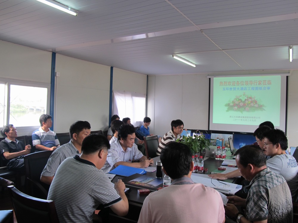玉環世貿大酒店工程位于玉環昌業路,環保路交叉口,總建筑面積61159.7m2,建筑總高度105.38 m,地下一層,建筑面積為8878.8m2,地上5~23層,建筑面積為52280.9m2,結構類型為框架-核心筒結構。7月29日該工程順利通過圖紙會審。此次會審由業主主持,監理、設計、施工各單位代表參加。項目部充分準備,總結圖紙內審并制作PPT播映,由設計逐條解決疑問,使施工人員能夠熟悉設計內容,能夠正確按圖施工,從而確保施工的質量,為工程爭創“魯班獎”奠定了強有力的基礎。